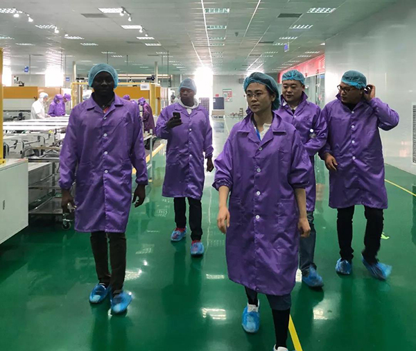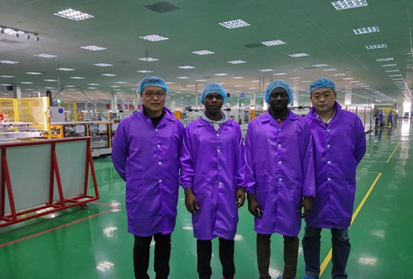 4月25日,我們就迎來了兩位加納的客人,我們這兩位加納客人中文也是非常的溜,還能彪兩句方言呢!在愉悅的氣氛當(dāng)中,我們業(yè)務(wù)部李經(jīng)理,陪同我們遠(yuǎn)道而來的加納的客人,首先參觀了廠區(qū)的展廳,了解了公司的成立、發(fā)展以及未來的發(fā)展方向,觀摩了產(chǎn)品展示區(qū)的組件產(chǎn)品以及微電站。緊接著,又來到了車間,李經(jīng)理系統(tǒng)詳細(xì)的給加納客人介紹了我們的復(fù)合型生產(chǎn)線的特點及優(yōu)勢,加納客人也饒有興致地詢問了很多問題。