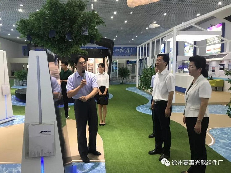 寓光能自籌備建廠以來,一直獲得了政府部門的高度重視與支持。在展廳內(nèi)嘉寓光能總經(jīng)理陳志榮向莊市長一行,介紹了嘉寓光能的基本情況,并且重點介紹了嘉寓光能的特色產(chǎn)品雙玻組件以及輕質(zhì)組件,莊市長還親自搬抬了普通組件及輕質(zhì)組件,感受了輕質(zhì)組件與普通組件在重量上的區(qū)別。