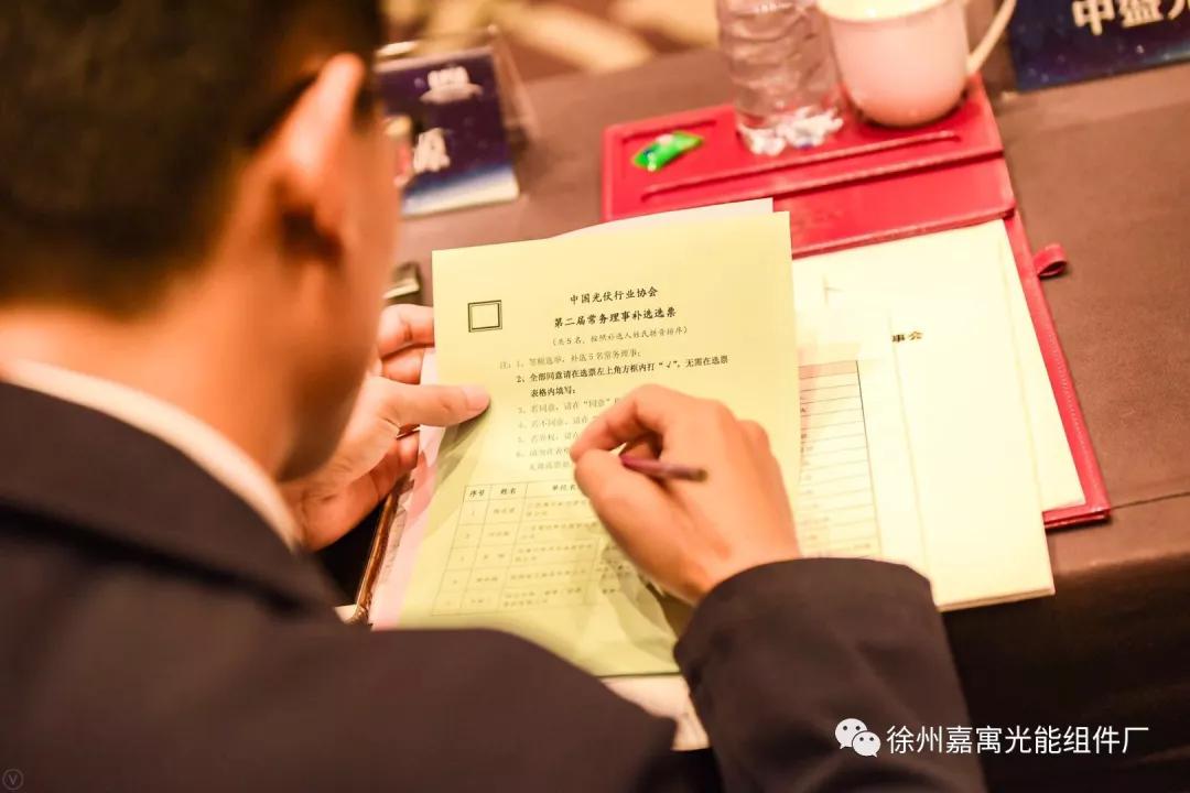 徐州嘉寓光能科技有限公司總經(jīng)理陳志榮受邀出席本次盛會(huì)。會(huì)上,補(bǔ)選了中國(guó)光伏行業(yè)協(xié)會(huì)第二屆理事、常務(wù)理事。陳志榮總經(jīng)理榮升第二屆理事。