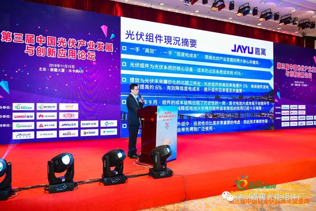 嘉寓光能受邀參加第三屆中國光伏創(chuàng)新與發(fā)展應(yīng)用論壇并做主題演講