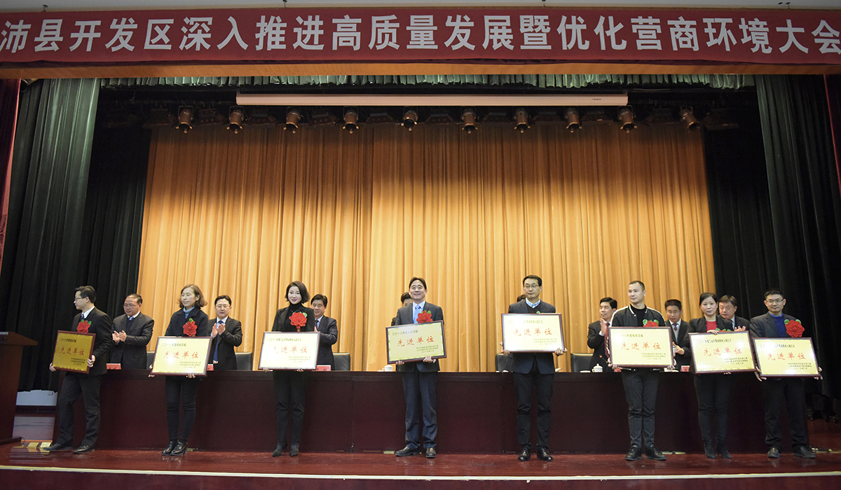 本次會(huì)議對(duì)2018年沛縣經(jīng)濟(jì)開發(fā)區(qū)的各項(xiàng)工作進(jìn)行了總結(jié),對(duì)區(qū)內(nèi)優(yōu)秀企業(yè)、開發(fā)區(qū)先進(jìn)單位和個(gè)人進(jìn)行了表彰獎(jiǎng)勵(lì),嘉寓股份副總裁張國峰、徐州嘉寓光能總經(jīng)理陳志榮分別代表公司上臺(tái)領(lǐng)獎(jiǎng)。