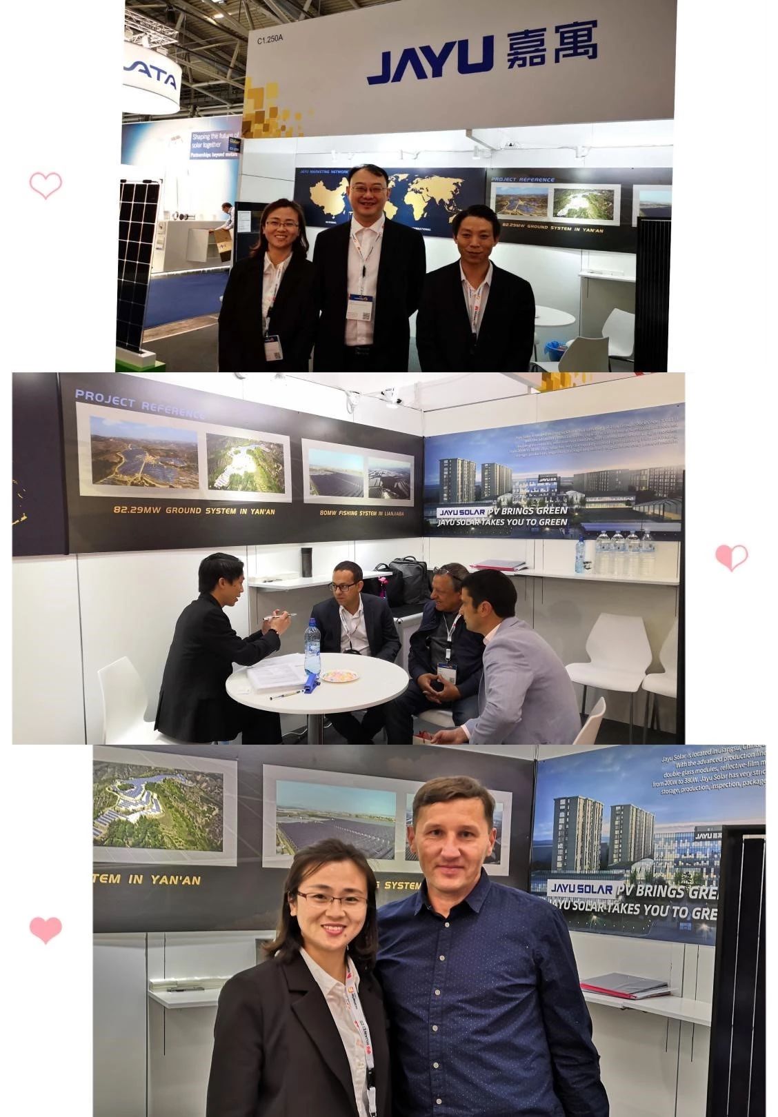 嘉寓光能本次參展由總經(jīng)理陳志榮先生親自帶隊(duì),攜嘉寓光能業(yè)務(wù)副總?cè)椒?、業(yè)務(wù)總監(jiān)車競以及海外業(yè)務(wù)部門多位高管,組成了參加展會(huì)的核心團(tuán)隊(duì),奔赴德國慕尼黑。本次嘉寓光能在2019年德國慕尼黑國際太陽能展展示了半片系列光伏組件、雙玻系列光伏組件以及全黑光伏組件系列。三款系列產(chǎn)品采用了嘉寓光能最新的高效技術(shù),功率均突破了400W,光伏組件的4.0時(shí)代,嘉寓光能已經(jīng)有了一席之地。尤其是半片系列光伏組件,最高功率可達(dá)450W,成為國內(nèi)外友人討論的焦點(diǎn)之一,是嘉寓光能在本屆展會(huì)中當(dāng)之無愧的“明星產(chǎn)品”。在為期三天的展會(huì)中,嘉寓光能和三款系列產(chǎn)品組件吸引了眾多業(yè)內(nèi)人士的關(guān)注,并接受了來自多個(gè)國家項(xiàng)目方的咨詢,活動(dòng)現(xiàn)場與我方達(dá)成了初步的合作意向的客戶鱗次櫛比。