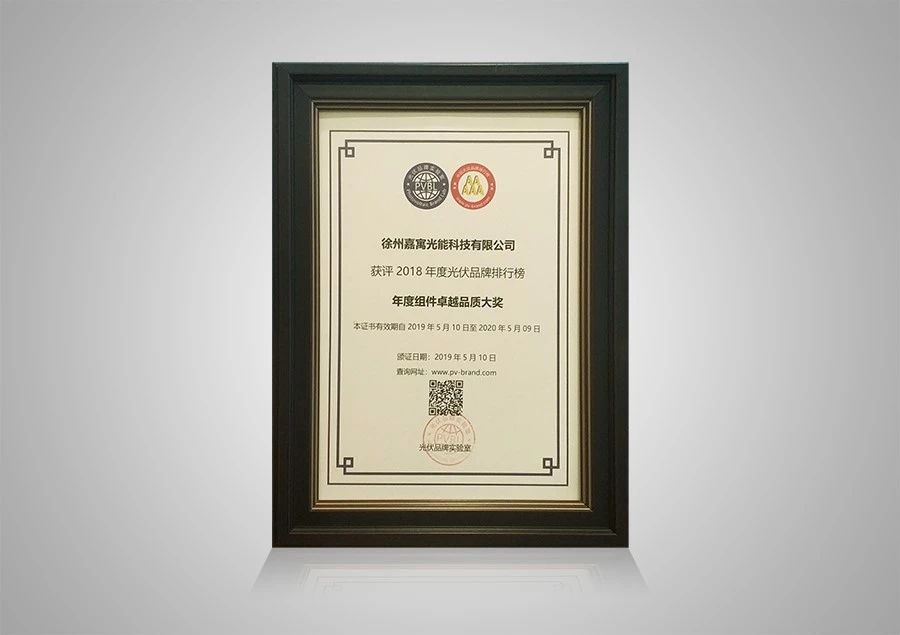 2019年5月10日,由光伏品牌實(shí)驗(yàn)室(PVBL)主辦的”PVBL2018年度中國光伏品牌排行榜”頒獎(jiǎng)典禮中,嘉寓光能榮獲“年度組件卓越品質(zhì)大獎(jiǎng)”。嘉寓憑借過硬的產(chǎn)品質(zhì)量,良好的用戶口碑,*質(zhì)的系統(tǒng)服務(wù),再次獲得業(yè)界的認(rèn)可。
